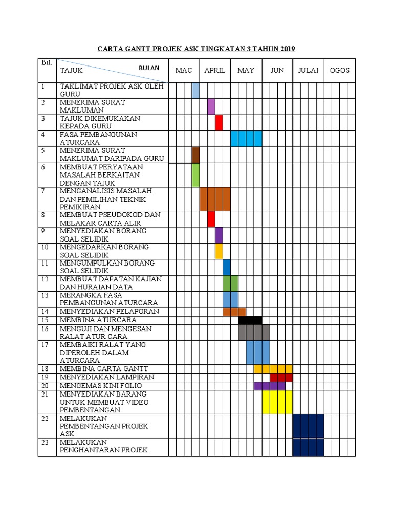 Contoh Carta Gantt Aktiviti Kokurikulum Tahun Pdf